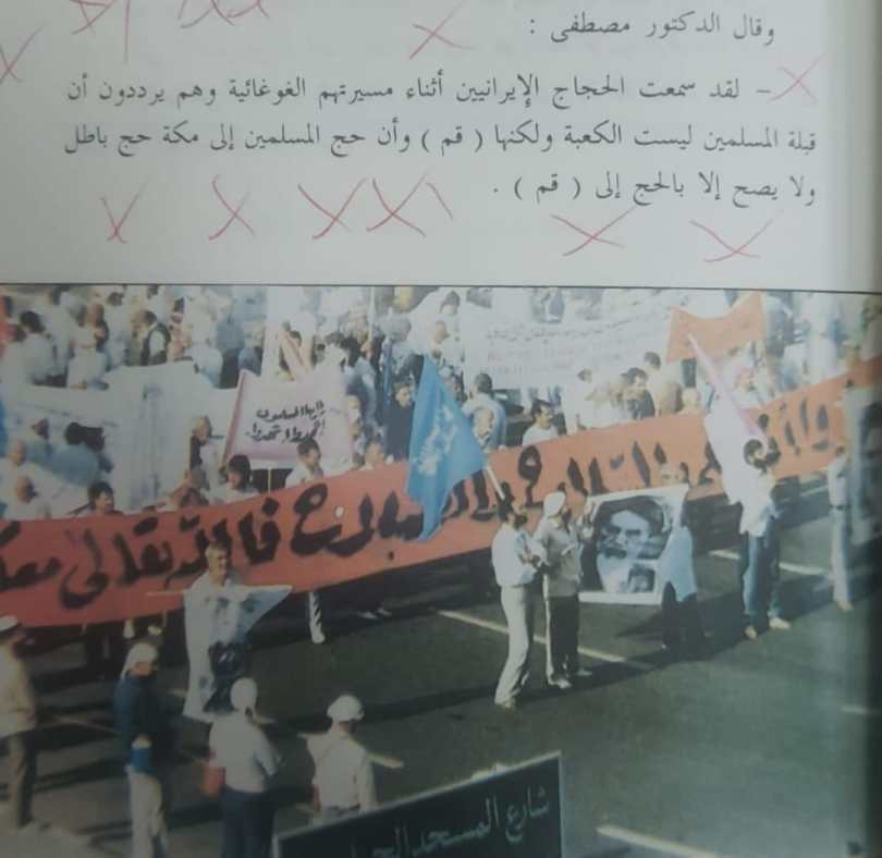 In 1404 the Minister of Hajj and Umrah Professor Abdul Wahhab Abdul Wasi met with Khoeini, the representative of Khomeini. He refused to speak Arabic and began an emotional speech about how Iranian pilgrim’s bags were searched at the airport and items were taken away. He complained that pictures of Khomeini were not allowed to hung up in Makkah and Madinah.